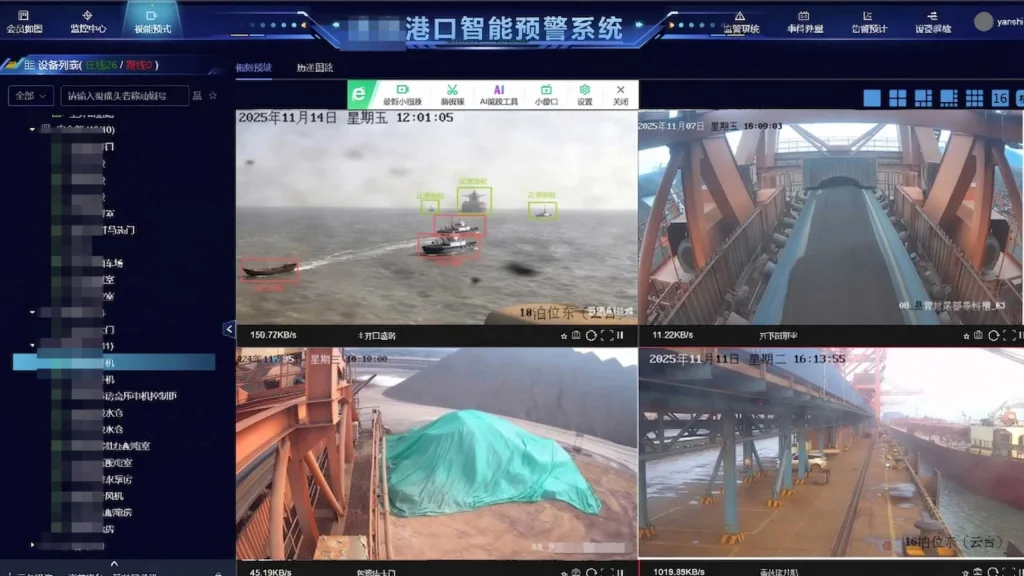 港口算法:皮带异物检测、未知异物检测、皮带跑偏检测、大块料检测、堆料检测、洒料检测、渔船入侵、船舶类型检测、料场苫布检测、船舶倾斜检测、未戴安全帽、未穿救生衣、工作服检测、违规进入禁区、离岗睡岗检测、吸烟检测、打电话识别、玩手机检测、打哈欠检测、闭眼检测、长时间驾驶检测、船舶流量统计、船体烟火检测、船舶偏航、逆行检测、船舶航速检测、安保人员检测、货舱盖检测、登乘安全网检测、机舱巡检等