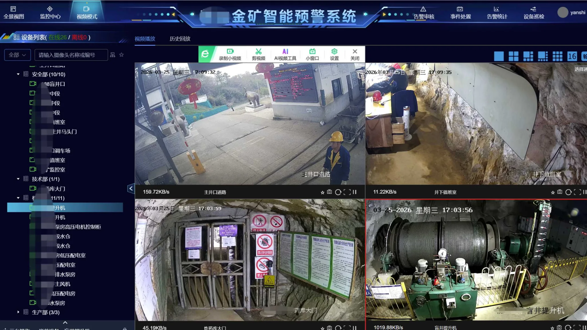 智慧矿山多模态预警平台通过集成多种技术与功能,如实时告警审核、事件处理、AI算法检测及数据分析,全面提升矿山的安全性和管理效率。同时支持多种设备及地图同步,实现移动巡查与即时通知,确保关键安全信息及时传递。